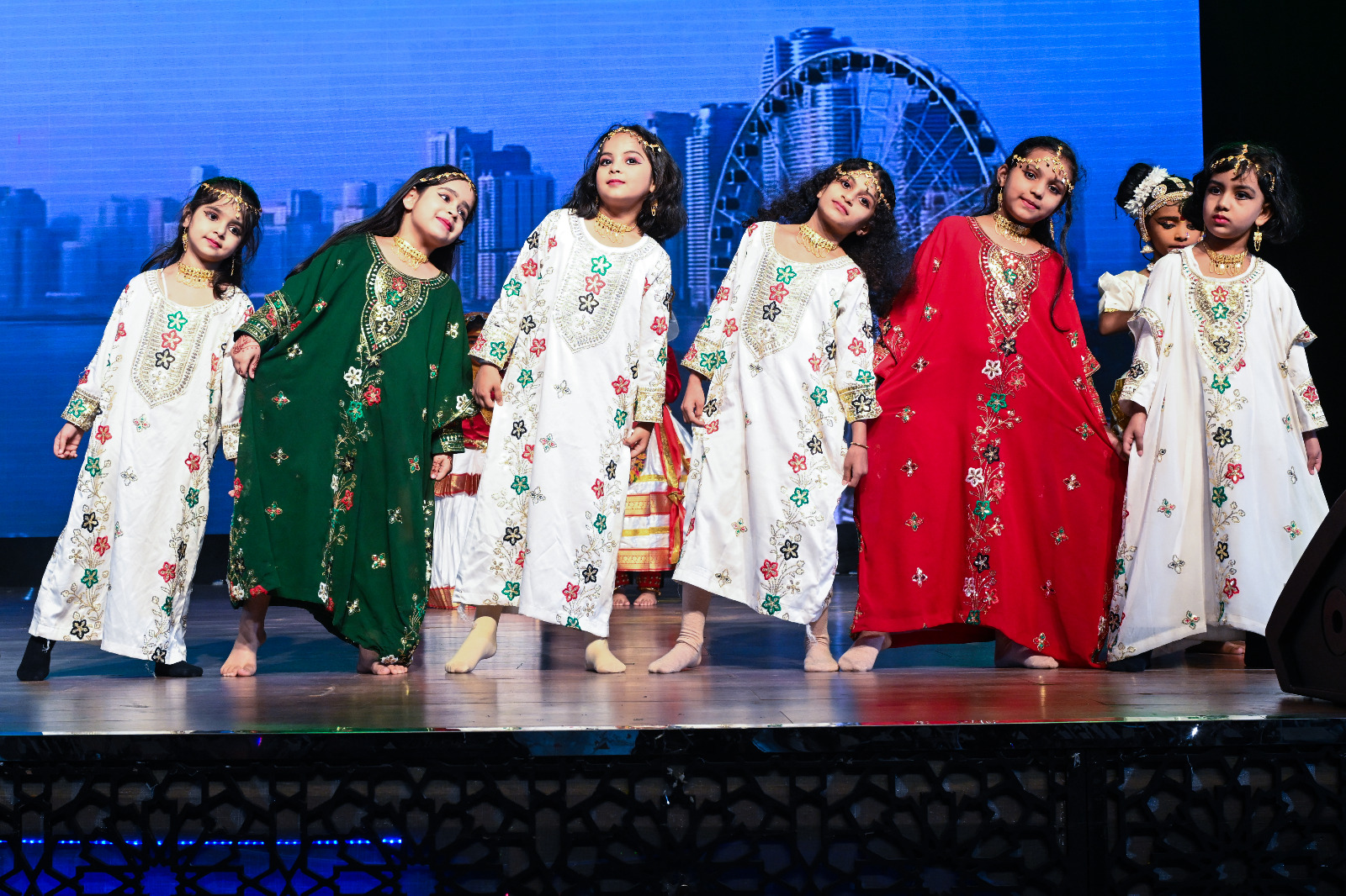 Students and teachers celebrating Haq Al Laila in traditional attire, promoting cultural heritage an...